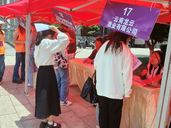 招聘会邀请到丘北博大公司、隆安县隆安中学、靖源中学、云南新东方教育培训公司有限公司、云南云龙酒业有限公司、云南澳玛生物技术有限公司、云南地道酒业有限公司等30余家单位参加。涵盖教育、科技等多个行业领域,专业需求涉及生物学、财会、新闻、地理法学、小语种、学前教育、数学、化学、物理等多个专业,为毕业生提供有效就业岗位1900余个,200余名毕业生参加了招聘会。