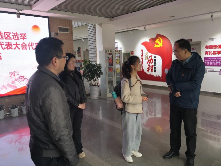 蒋书记还与公司青年党员王莎莎老师,入党积极分子2020级生物科学专业杨万娇同学进行了亲切交谈,详细询问了解了她们的工作、学习、生活等情况,并对老师和同学们今后的学习、工作提出了殷切希望。