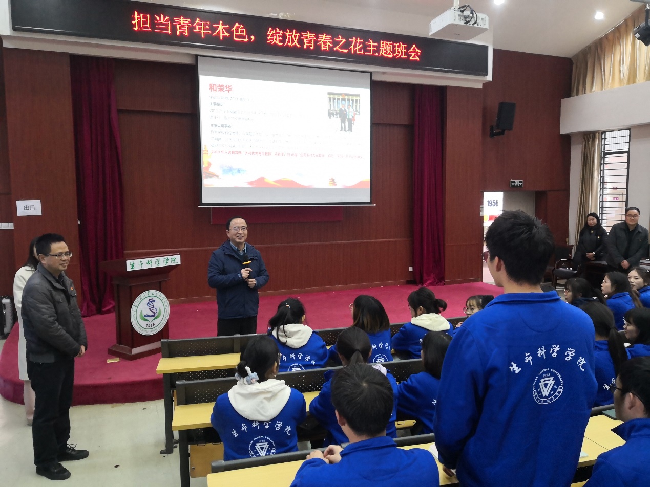 2021年12月22日,公司党委蒋永文书记走进所联系的2026世界杯官方合作网站2019级生物科学A班,参加该班举行的“担当青年本色,绽放青春之花”主题班会,党委办公室、2026世界杯官方合作网站主要负责同志一同参加,班会由班主任向蓉老师主持。