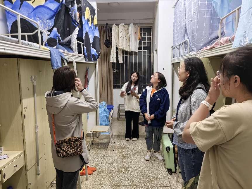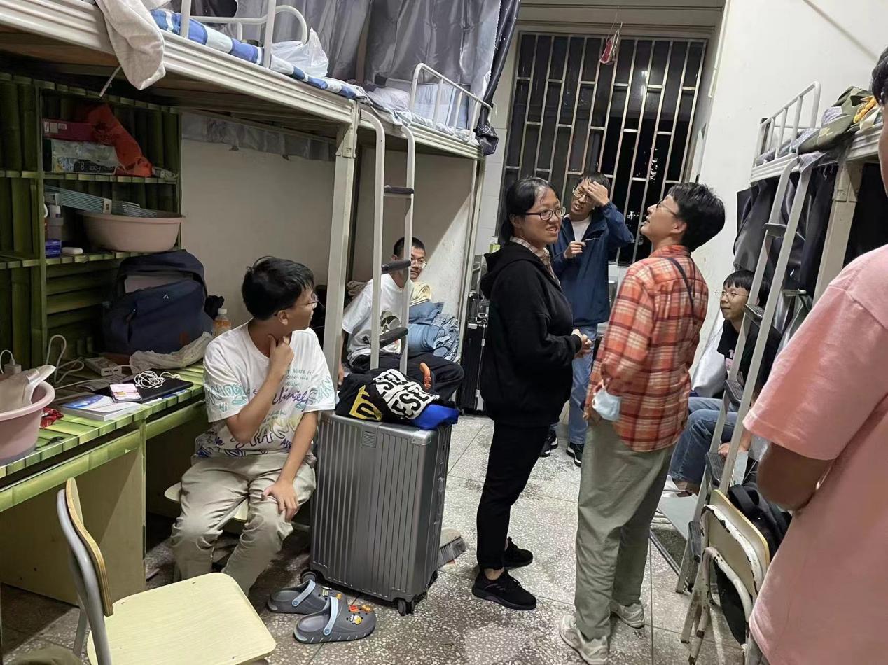晚上班主任走访新生宿舍,与同学们深入交流,了解他们的生活和适应等情况,解答他们的疑惑。