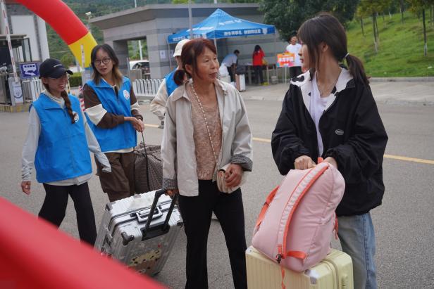以“心”迎新,梦想起航。志愿者们在公司6号门口高举公司引导牌,每到一位新生,众多志愿者热情地迎上去:“新同学,你好”、“欢迎来到公司”,并主动接下新生和家长手中沉重的行李,引导新生前往宿舍。