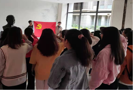 活动当天全体党员同志怀着崇敬的心情,在西南联大师范公司经理黄钰生的雕像前重温了入党誓词,铮铮誓言,字字铿锵。