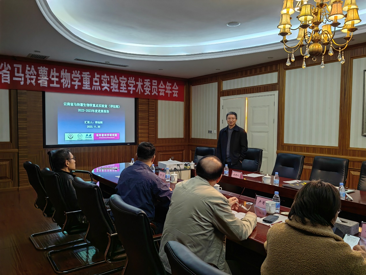 实验室主任李灿辉对马铃薯生物学重点实验室2022-2023年度工作总结、重点实验室开放基金工作进展、及2024年重点实验室主要工作计划等做了汇报。学术委员会充分肯定了重点实验室2022-2023年度在科学研究、项目组织、人才引进和培养、及科技成果服务地方等方面所取得的成绩,并逐一对重点实验室未来发展提出了建设性意见。学术委员建议,实验室需要进一步健全人才培养机制,深化国际交流合作,加强研究成果宣传,要做好冲击云南省实验室和国家实验室的规划和准备。