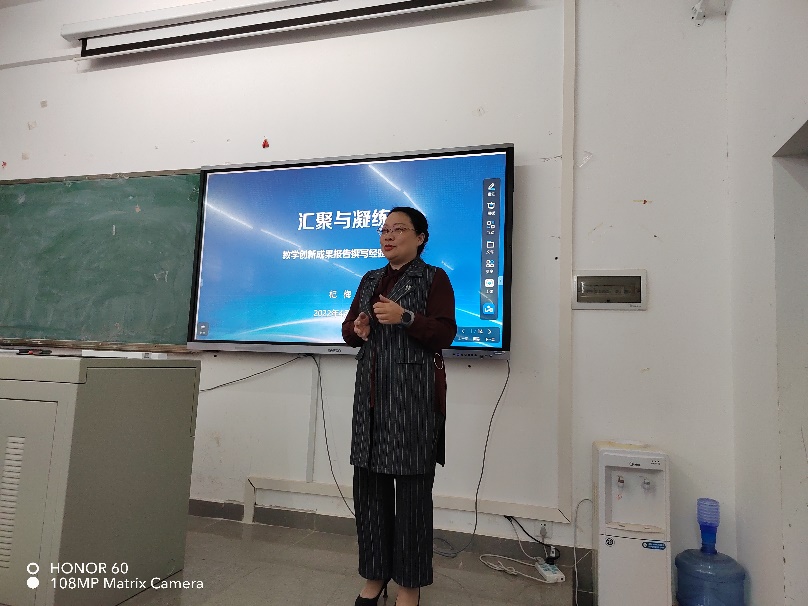 专家杞梅作为云南省第二届教学创新大赛特等奖获得者分享了自己参加比赛的心得感悟,向大家展示了创新成果报告的撰写要点,鼓励各位教师以员工为中心,梳理自己历年来的教学工作,提炼、总结教学中的成果,发现教学中存在的问题,以问题为导向,持续改进教学,最终不断提升本科人才培养质量。