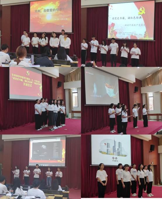 我们《歌唱祖国》,我们诵读经典《党啊,我敬爱的母亲》、《中国共产党简史》和《可爱中国》,紧随而来的是各党小组带来的党史学习教育读书活动的前期学习成果汇报。