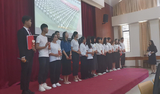 伴随着激昂的《我宣誓》中,我们迎来了支部党员的纪念日----政治生日,三位支部书记为5月份入党的党员同志庆生,颁发政治生日贺卡。第四党支部书记段晓艳老师为党员送上祝福:“从加入中国共产党的那一刻起,你们就踏入了党的门,成为党的人,这就意味从此你们要肩负责任、勇往前行,希望你们永葆青春活力,积极投身到党和国家的建设中,在实践中践行入党誓词祝你们生日快乐”。全体党员共同重温了入党誓词,重温了那份激动。
