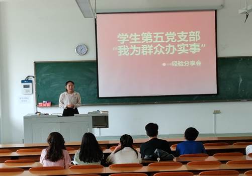 2021年5月21日,公司员工第五党支部的全体党员在汇学2-204教室以 “经验分享会”的形式组织开展了“我为群众办实事”活动。在支委充分了解2018级生物科学B班同学所面临诸多学业困难的前提下,第五党支部的全体党员有针对性的对实习、保研、考研及就业等多方面经验进行分享交流。员工第五党支部书记陈晓波老师以和2018级生物科学B班班主任高艳秀老师也参加了此次活动。