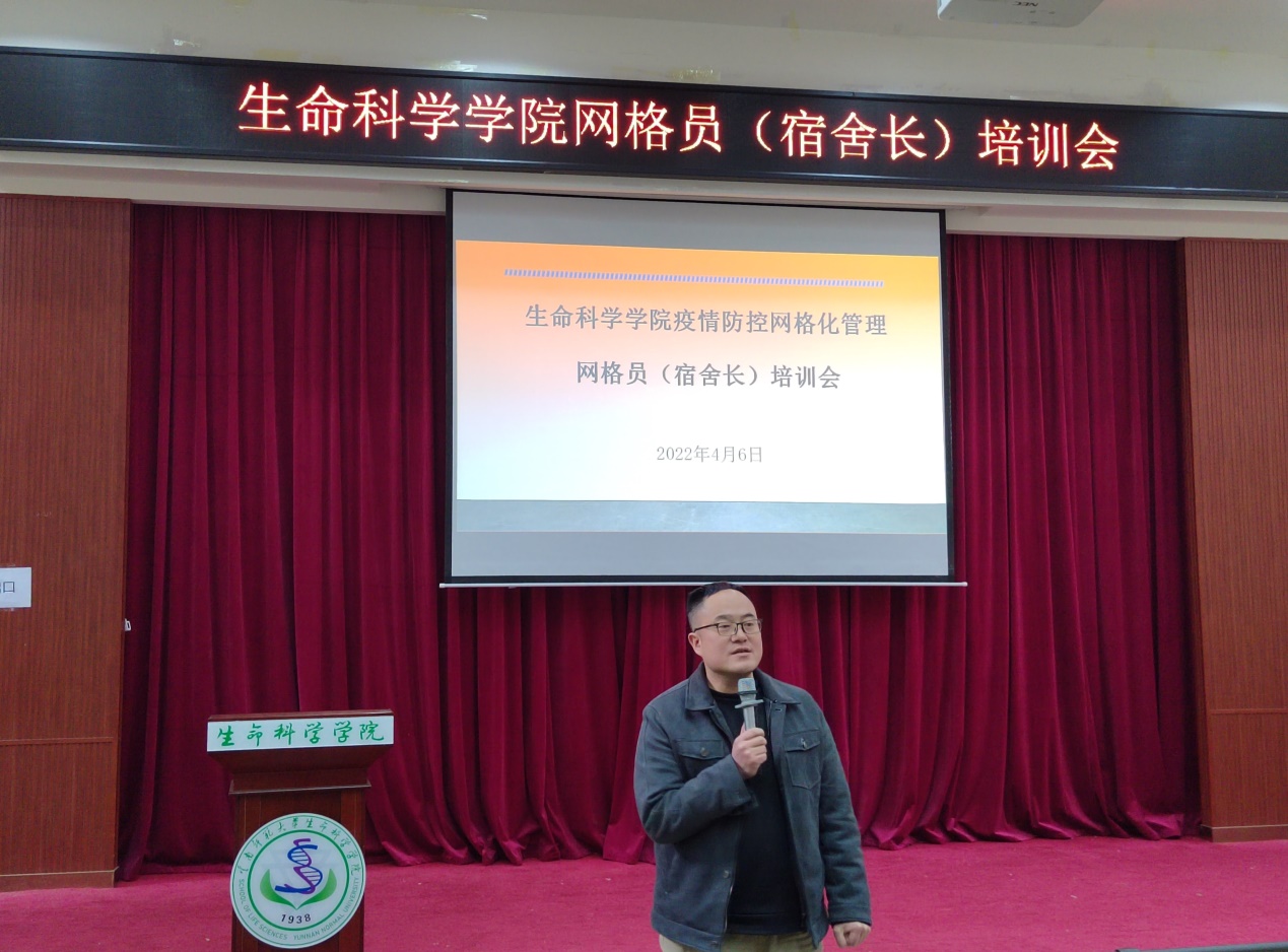 就当前公司常态化疫情防控工作,公司党委副书记唐明靖老师强调每个生科学子是自己身体健康的责任人,要严格遵守疫情防控规定。同时,结合当前疫情防控的严峻性解释了“非必要不外出”的具体内容和重要意义;并希望在坐的宿舍长们强化责任意识,加强信息沟通,师生同力构筑安全防护墙,维护校园的安全稳定。