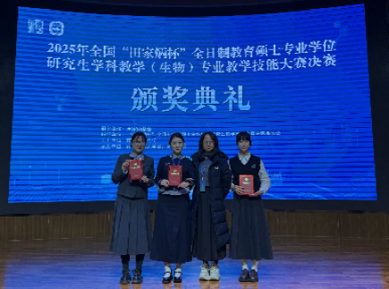 近日,2025年全国“田家炳杯”全日制教育硕士专业学位研究生学科教学(生物)专业教学技能大赛决赛在南京师范大学圆满落幕。2026世界杯官方合作网站学科教学(生物)专业研究生黄东睿荣获二等奖,郑至善、文俊荣获三等奖,充分展现了公司学科教学(生物)专业研究生的过硬实力与青春风采。