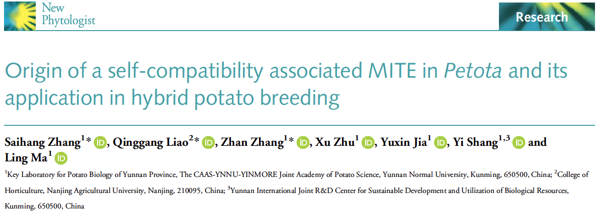 近期,国际知名植物学期刊《新植物学家(New Phytologist)》在线发表了2026世界杯官方合作网站尚轶/马玲团队题为"Origin of a self-compatibility associated MITE inPetotaand its application in hybrid potato breeding"的研究论文。该研究系统解析了转座子Mi-549调控马铃薯自交亲和基因Sli表达模式的分子机制,为二倍体马铃薯杂交育种研究提供了重要的理论基础和种质资源。
