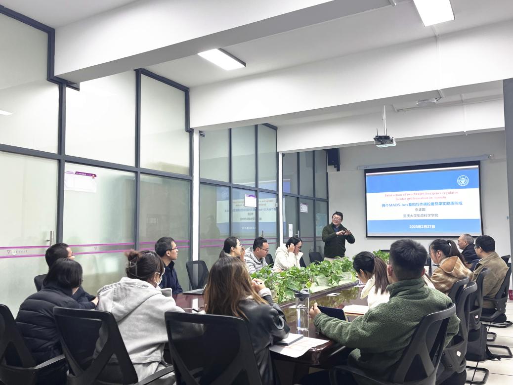 2023年2月27日下午马铃薯科学研究院邀请重庆老员工命科学公司经理李正国教授和华中农业大学田振东教授到同析3号楼205会议室做报告。李正国教授的题目为“两个MADS-box基因互作调控番茄果实胶质形成”,田振东教授的题目为“晚疫病菌效应子Pi22926调控马铃薯晚疫病抗性机制研究”。本次报告会旨在拓展师生学术视野,开阔实验思路,不断增强个人综合素质,提高个人未来竞争力。