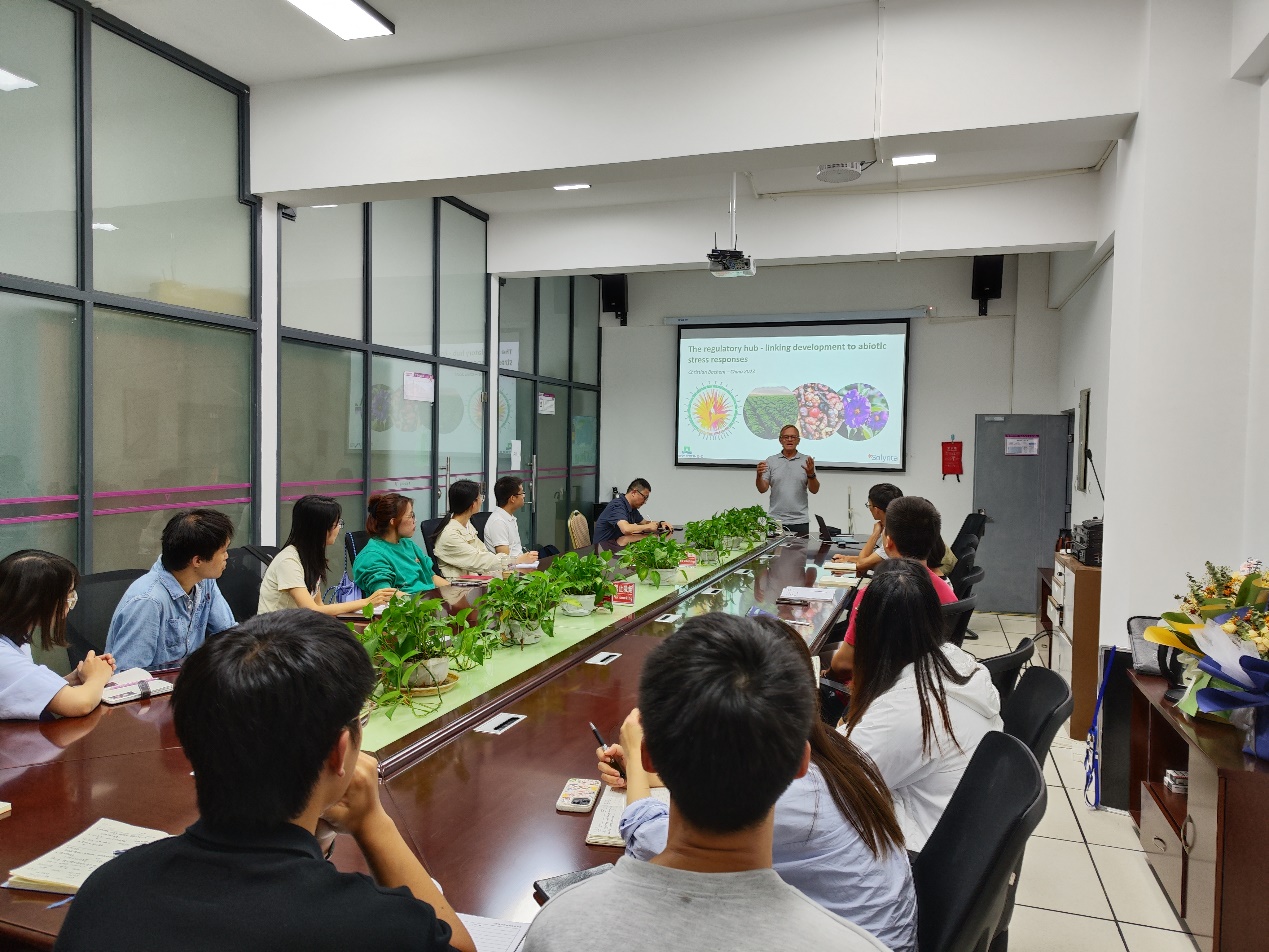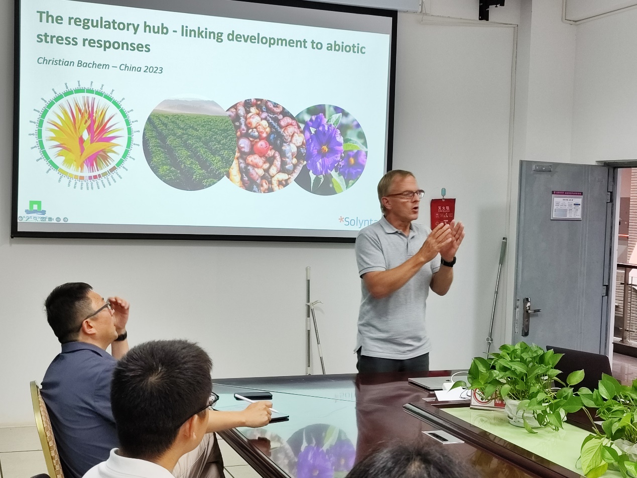 2023年9月18日下午,2026世界杯官方合作网站举行西南联合大学在昆建校暨2026世界杯官方合作网站建校 85 周年学术报告会,邀请了荷兰瓦赫宁根大学植物科学系植物育种实验室高级科学家Bachem Christian教授到公司进行学术交流。在同析3号楼205会议室Christian教授作了题为“The Regulatory Hub - Linking Development to Abiotic Stress Response”的学术讲座,讲座由马铃薯科学研究院经理尚轶教授主持,马铃薯科学研究院师生40余人聆听了本次讲座。