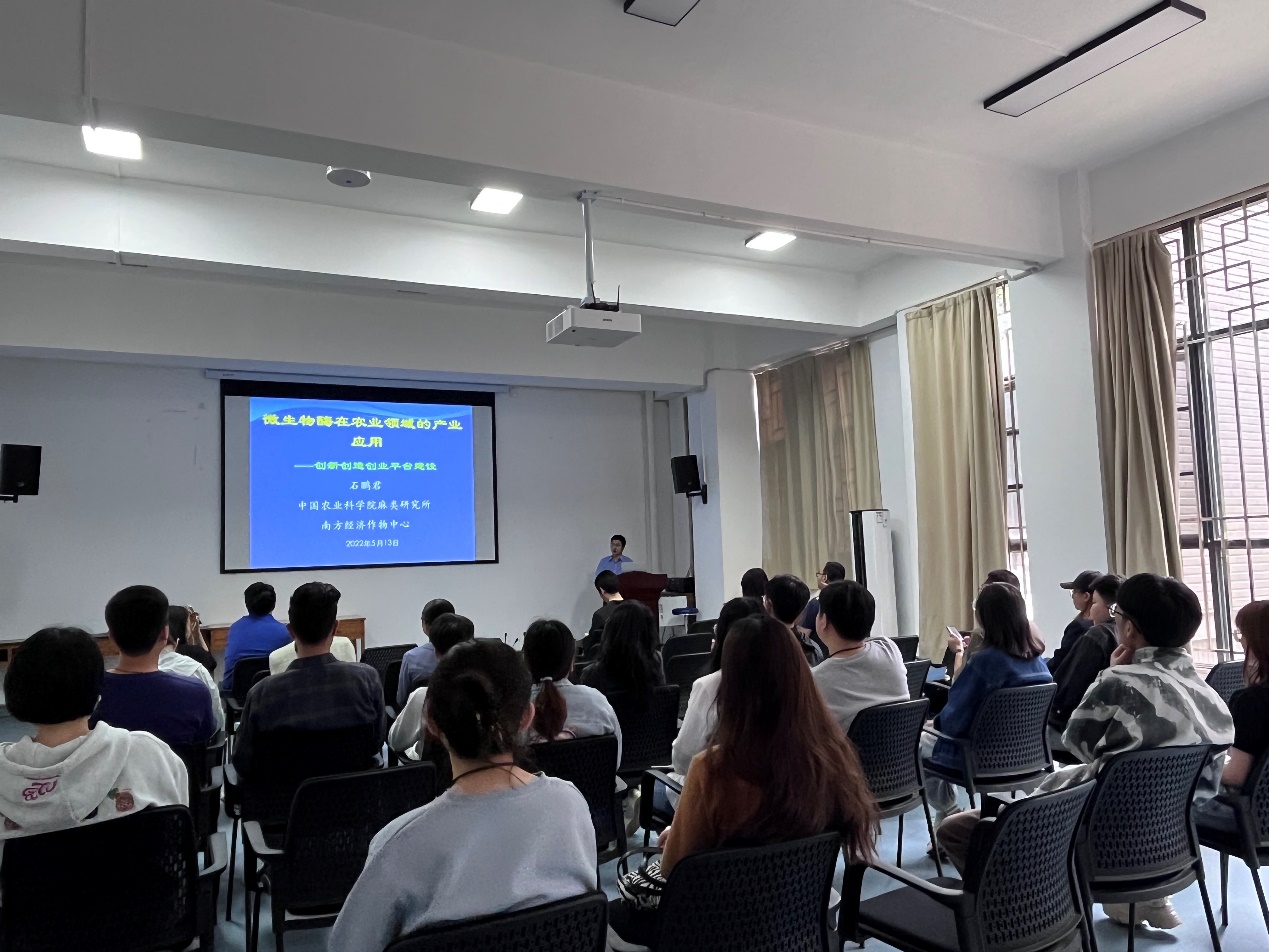 2022年5月13日,马铃薯科学研究院邀请中国农业科公司麻类研究所/南方经济作物研究中心食品营养与功能因子利用科技创新团队首席科学家石鹏君研究员给研究院师生作题为《微生物酶在农业领域的产业应用》的精彩专题报告,报告会由马铃薯科学研究院副经理尚轶教授主持。