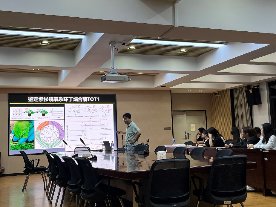 此次闫建斌研究员以“红豆杉次生代谢与紫杉醇生物合成”为题,首先从生物制造方面向大家介绍了合成生物学的重要性,接着讲述了红豆杉的悠久历史和癌症对人类健康的巨大威胁,并解析了紫杉醇生物合成的关键步骤。同时,闫建斌研究员对紫杉醇生物合成中的催化可塑性及其动态代谢网络进行了系统梳理,并对其后的发展方向进行了展望。