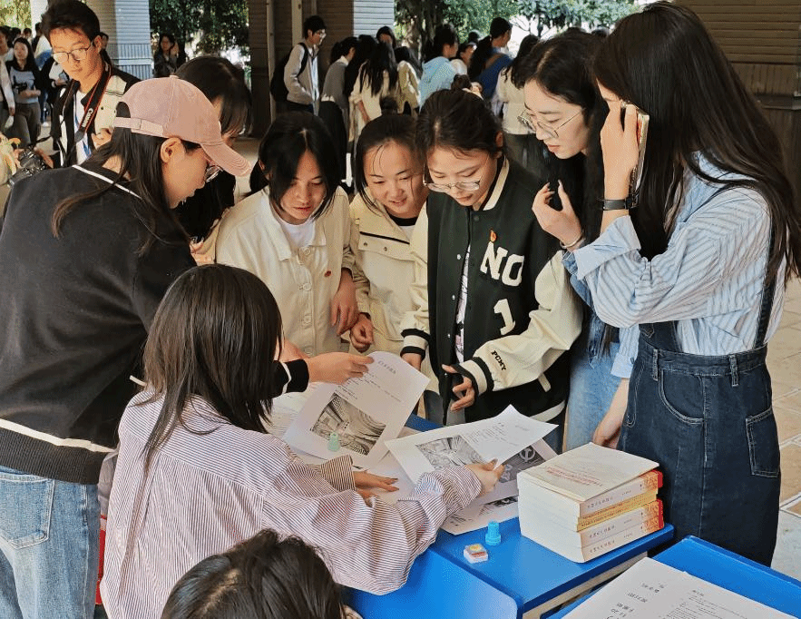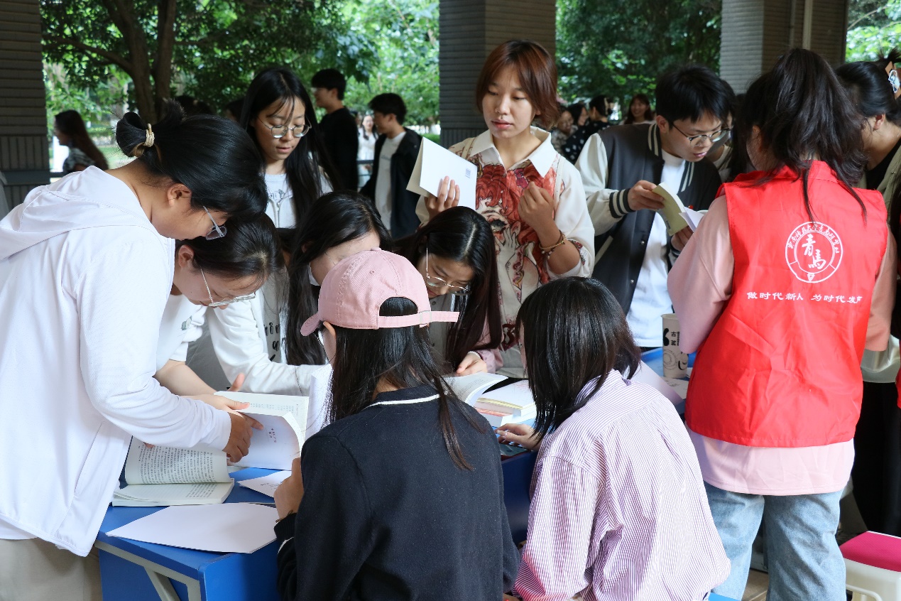 同学们积极参与答题活动并翻阅书籍查询党史资料